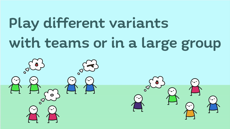 Players split into pairs (one seeker and one explainer per team). Each team chooses an object to be hidden.